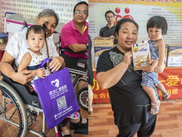9月2日,武漢仁愛醫(yī)院“奶粉愛心捐贈(zèng)車”再次出發(fā),來到豐美社區(qū),捐贈(zèng)地點(diǎn)是位于武漢市硚口區(qū)長(zhǎng)風(fēng)大道長(zhǎng)風(fēng)路35號(hào)華生漢口城市廣場(chǎng)的太陽之家互助中心。據(jù)了解,豐美社區(qū)5400戶居民其中廉租房3400戶、公租房800戶、安置房1200戶,該地區(qū)是武漢最大的公租房社區(qū),是武漢困難家庭集中生活區(qū)。早早等待在大廳的居民們臉上充滿了期待與感激。這次領(lǐng)取奶粉的同樣有很多殘疾人家庭。身患腿疾的李奶奶坐著輪椅抱著自己可愛的孫女跟我們聊天,我們問她為什么這么早就過來了,李奶奶激動(dòng)的對(duì)我們說:“我的孫女就是在仁愛醫(yī)院出生的啊!聽說你們要來豐美,我老早就在這里等了,只要能讓孫女吃上好奶粉,再苦我也愿意!”