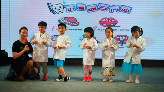 活動(dòng)中,小朋友們紛紛穿上白大褂,變身職業(yè)小醫(yī)生,開啟今天的“小牙醫(yī)”體驗(yàn)之旅。“小朋友們,那你們知道如何保護(hù)自己的牙齒嗎?”面對(duì)醫(yī)生的提問,小朋友瞬間炸開了鍋,爭(zhēng)相回答,氣氛也一下子活躍起來,緊接著,武漢仁愛醫(yī)院口腔顧問董丹為小朋友們講解了齲齒的形成、口腔預(yù)防知識(shí),強(qiáng)調(diào)了涂氟和窩溝封閉的重要性以及注意事項(xiàng)。從口腔基本知識(shí)到牙齒的保護(hù),從生活習(xí)慣的養(yǎng)成,到正確的刷牙方法,將口腔保健知識(shí)一一道來?;顒?dòng)現(xiàn)場(chǎng),不光是小朋友聽得津津有味,連家長(zhǎng)們也不時(shí)拿出手機(jī)拍照記錄。