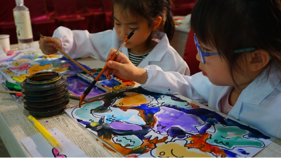 在精彩的授課結(jié)束后,期遇記藝術(shù)坊的老師們帶著小朋友拿出畫筆,開展了“牙齒細(xì)菌大作戰(zhàn)”繪畫課堂,小朋友們結(jié)合醫(yī)生剛剛講解的知識(shí),紛紛將自己想象中牙齒細(xì)菌的樣子畫在了紙上,整個(gè)課堂充滿了歡聲笑語。