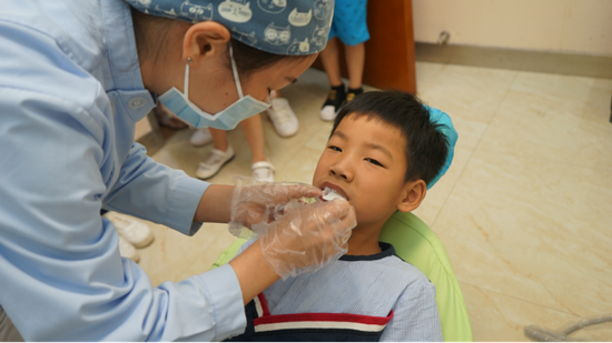武漢仁愛醫(yī)院醫(yī)生為小朋友涂氟