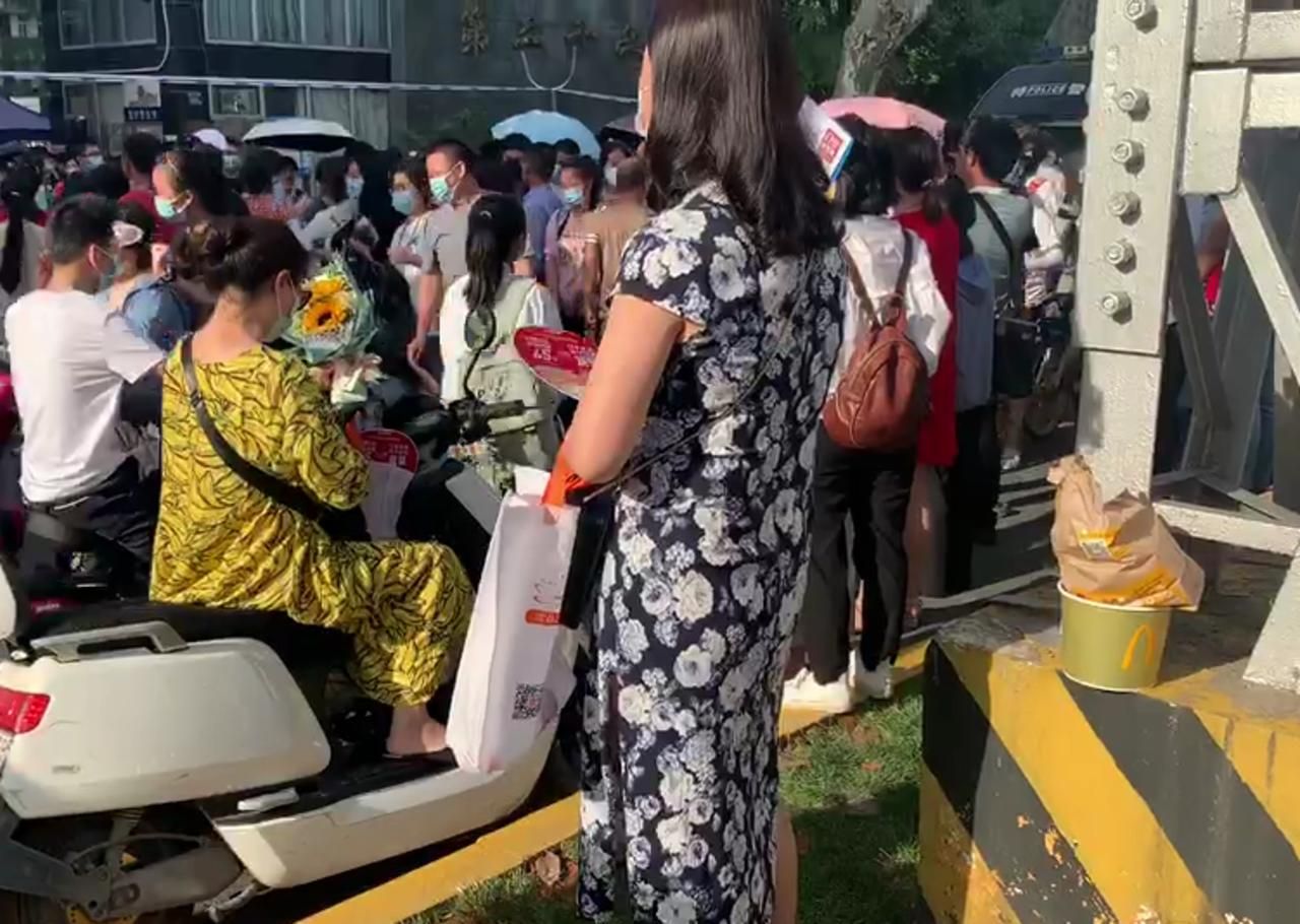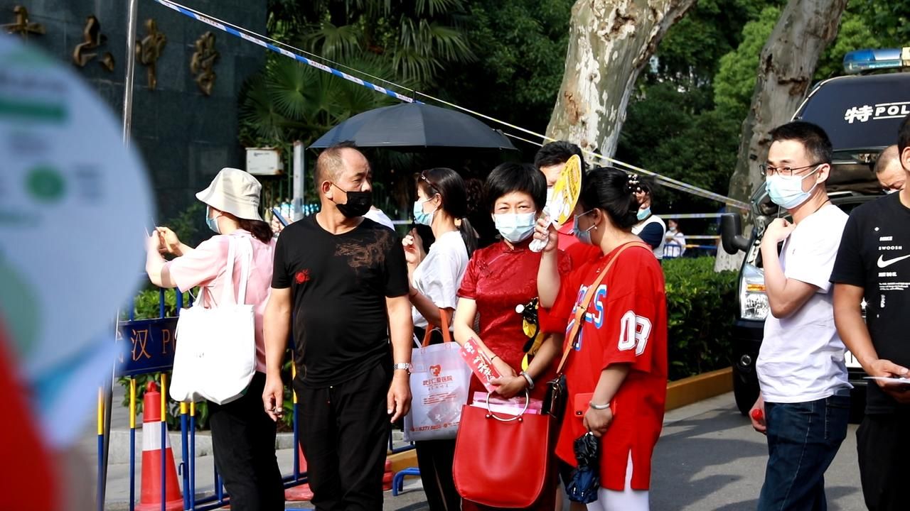 記者也注意到,不少前來送考的家長也特地穿上了紅色的衣服和旗袍,希望有個好兆頭,孩子能考出好成績,旗開得勝。