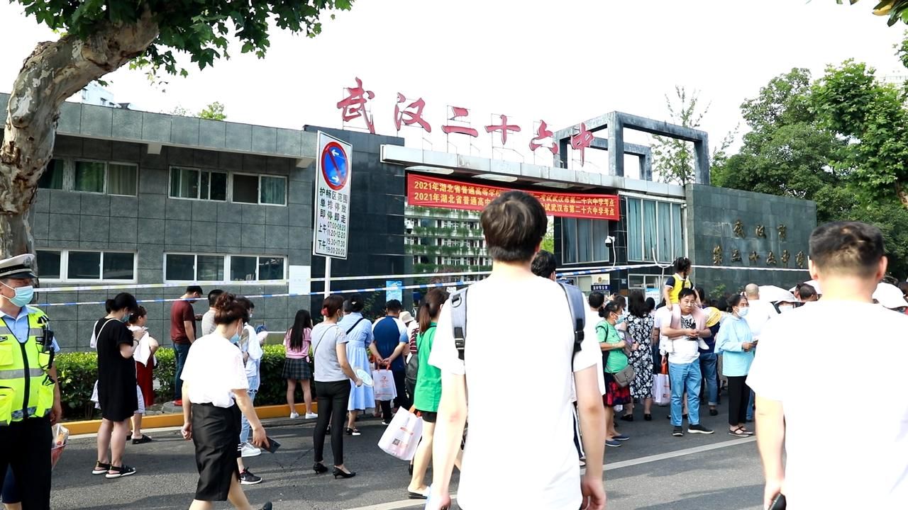 武漢仁愛醫(yī)院工作人員為考場外家長、警察及環(huán)衛(wèi)工人送清涼