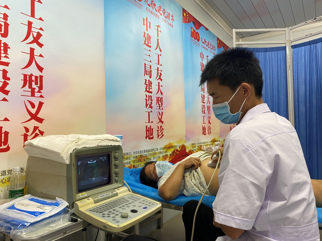 醫(yī)生為工友做b超結(jié)石篩查
