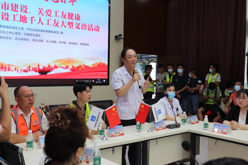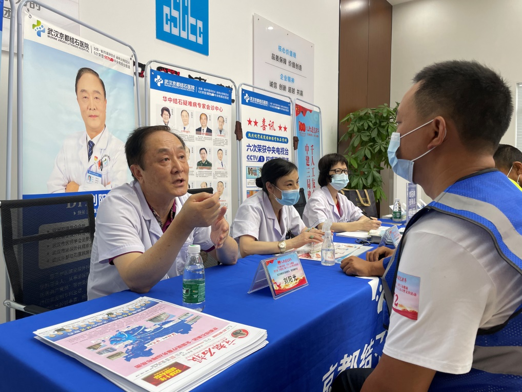 啟動(dòng)儀式結(jié)束后,武漢京都結(jié)石醫(yī)院為到場的數(shù)百名建筑工人代表進(jìn)行了免費(fèi)體檢、專家咨詢等服務(wù)項(xiàng)目,獲得廣大工友們的紛紛點(diǎn)贊。