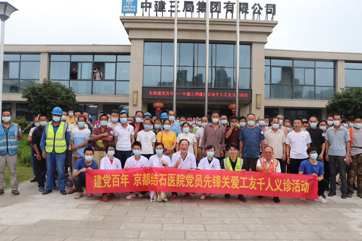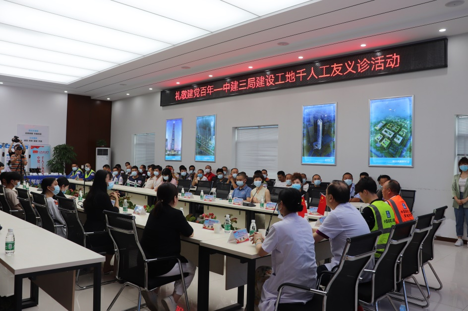 為熱烈慶祝中國共產(chǎn)黨建黨100周年,扎實(shí)推進(jìn)黨史學(xué)習(xí)教育,踐行“我為群眾辦實(shí)事”實(shí)踐活動(dòng),切實(shí)關(guān)愛建筑工友的身體健康,6月27日上午,中建三局武漢長江中心項(xiàng)目聯(lián)合武漢京都結(jié)石醫(yī)院,開展“關(guān)注城市建設(shè)·關(guān)愛工友健康”千人工友大型義診活動(dòng)(以下簡稱“千人義診”活動(dòng))。中建三局武漢長江中心項(xiàng)目黨支部副書記黃業(yè)發(fā)、安全總監(jiān)黎長貴,武漢京都結(jié)石醫(yī)院黨支部書記劉陽光以及數(shù)百名建筑工人代表共同出席了啟動(dòng)儀式。