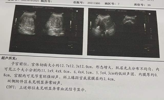 患者劉某(化名),52歲,來自武漢市黃陂區(qū)。2019年4月,劉某在當(dāng)?shù)蒯t(yī)院查出6.1*5.0cm大小肌瘤,口服中藥數(shù)月后,肌瘤未減小反而逐漸長(zhǎng)大且多發(fā)。為此,劉某曾輾轉(zhuǎn)數(shù)字醫(yī)院施治并復(fù)查,但均無任何好轉(zhuǎn)跡象,最后,劉某慕名到武漢仁愛醫(yī)院婦科要求手術(shù)治療。
