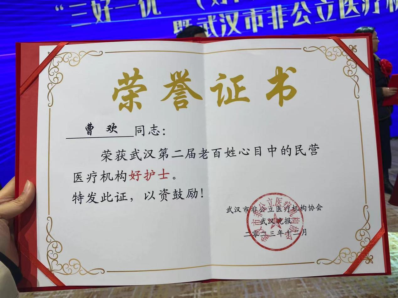 12月10日上午,由武漢市衛(wèi)生健康委員會(huì)、武漢市醫(yī)療保障局指導(dǎo),武漢市非公立醫(yī)療機(jī)構(gòu)協(xié)會(huì)、長(zhǎng)江日?qǐng)?bào)社主辦的武漢第二屆老百姓心目中的民營(yíng)機(jī)構(gòu)“三好一優(yōu)”表彰大會(huì)隆重舉行,經(jīng)過激烈角逐、網(wǎng)上評(píng)議和評(píng)委會(huì)綜合評(píng)定,我院沈章義院長(zhǎng)、胡換春主任榮獲第二屆老百姓心目中的“好醫(yī)生”榮譽(yù)稱號(hào),我院曹歡榮獲第二屆老百姓心目中的“好護(hù)士”榮譽(yù)稱號(hào)。榮譽(yù)在身,責(zé)任在肩,全體京都將一如既往勇?lián)】凳姑?,鑄就時(shí)代新功!